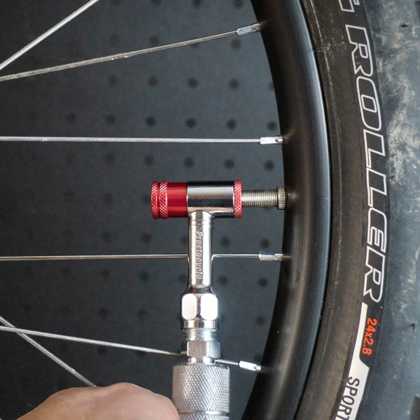 - NEW One-Handed Inflation Tool. Hold the Bike with the other hand.