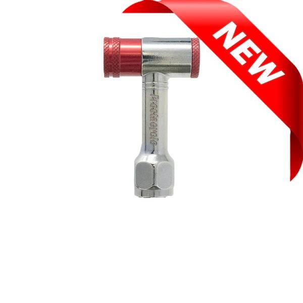 Push-to-inflate is what everyone knows from automotive valves. Prestacycle introduces our simple 90 degree wand that offers push-to-inflate Presta on one end and Push-to-inflate Schrader on the other end. Designed with right angle for bicycles, includes clearance so it also works on most low profile automotive wheels, even with TPI valves.